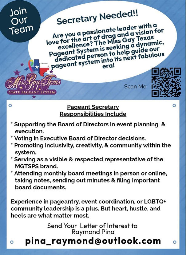 The Miss Gay Texas State Pageant System is a pageant system dedicated to promoting diversity and talent within the LGBTQ+ community.